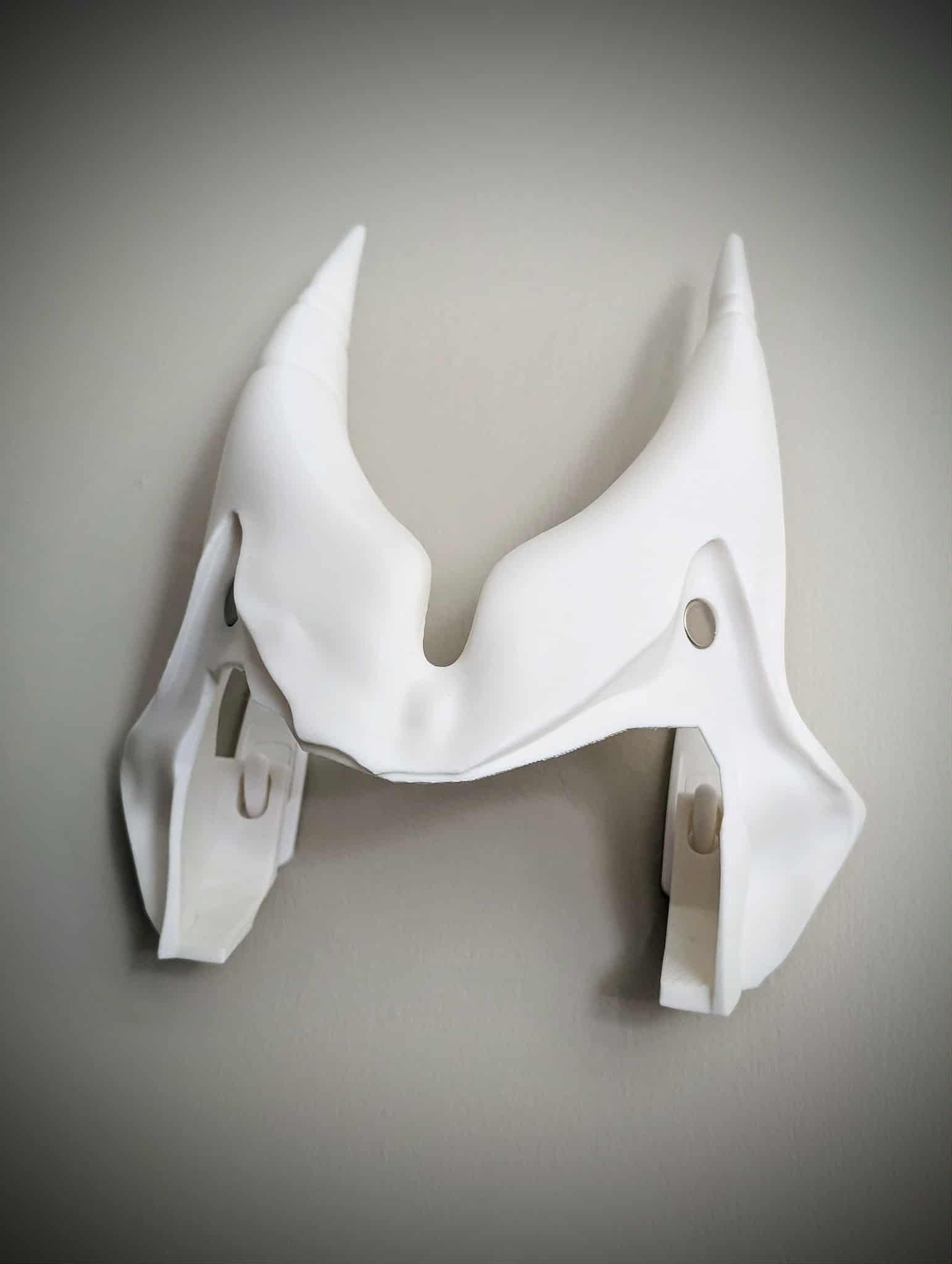 The mask in printed in 2 pieces to make moutning easier and there is a shelf in the bottom jaw for a LED puck to sit freely(Will fit up to a 2.5 inch puck light).